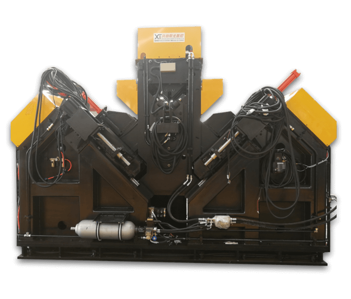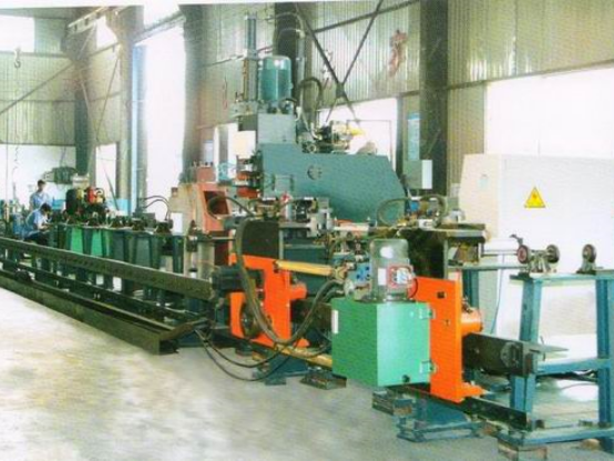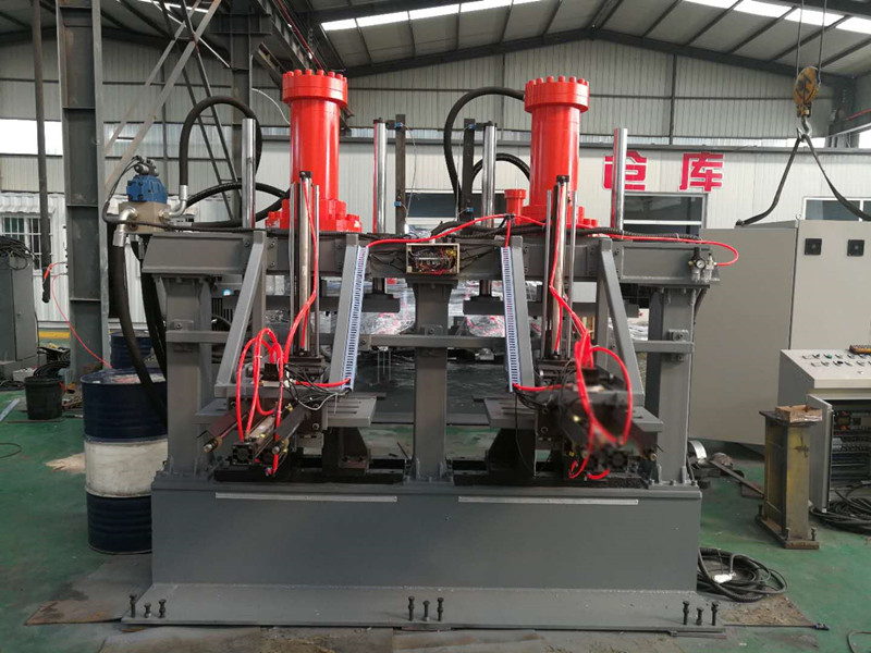 該機(jī)為龍門式五缸壓力機(jī),可利用前后管支架,對(duì)鋼管進(jìn)行矯直作業(yè),一機(jī)兩用。